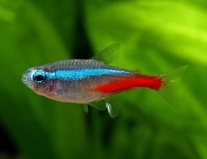 水色のラインが美しいこのお魚は“ネオンテトラ”といいます。