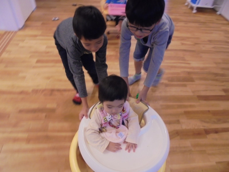 こんな異年齢児同士の微笑ましい関わりが見られるのも、トゥインクルならではですね。赤ちゃんたちもお兄ちゃんたちと一緒に遊べて、とってもうれしそうでした☺