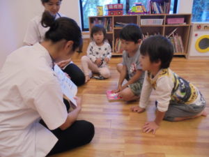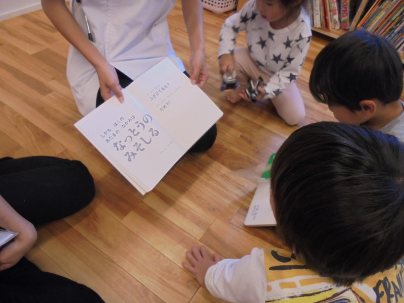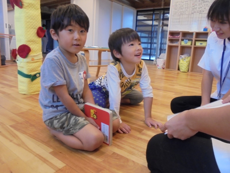 3時のおやつが食べ終わると お姉さん先生の絵本の時間が始まりました