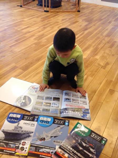 付属でついているDVDをスタッフも一緒に見せてもらいました。日頃の訓練の様子や、自衛隊の方のインタビューまで盛りだくさんの内容で、貴重なものが見られて、スタッフも感動でした。人を守り、助ける仕事、とても素敵ですね。お兄ちゃん、カッコいい自衛隊の夢、叶えてね!応援しています!
