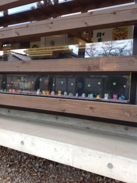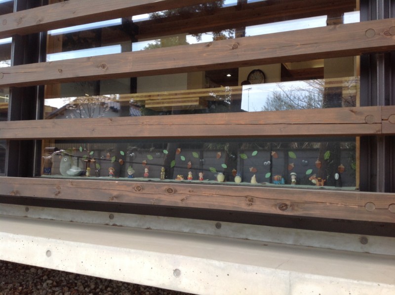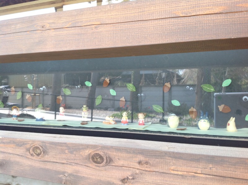 ちょうどお子さんの目線の高さで、気づいてくれるお友だちもいて、トトロたちも喜んでいます。こちらはジブリの仲間がいっぱい!まっくろくろすけもいるんですよ。