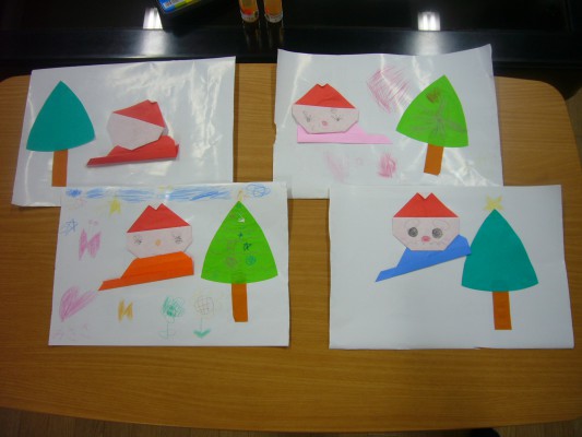 トゥインクルでもサンタさんの絵を折り紙で作りましたよ ![]()
