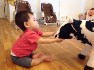 でもすぐにお手々を伸ばして遊び始めていましたよ!