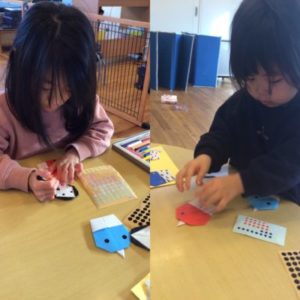 今年の節分はシールを貼ったり、模様を描いたりして